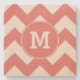Monogrammed Light Coral Zigzag Pattern Stone Coaster