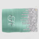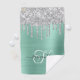 Monogrammed Light Teal Silver Dripping Glitter Golf Towel