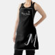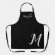 Small white heart of love, name and initial on black (editable colour) stylish-apron... a monogrammed all-over-printed-apron to protect your clothes while cooking