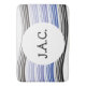 Personalize this bathmat for his bathroom. An ideal blue and black wave stripe decorator item.