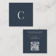 Monogrammed Minimal Celestial Stars Navy QR Code Square Business Card