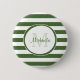 A modern forest green and white broad stripes pinback button. Personalize this sleek pattern by adding your name and monogrammed initial. This chic monogram design is part of the Treetop Stripes Personal Essentials Summer Colour Collection.