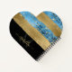 Girly modern light metallic blue print heart notebook in brush strokes with gold, glitter, black and adorned with your script monogram, first name and initial.