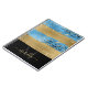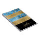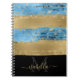 Girly modern light metallic blue print notebook in brush strokes with gold, glitter, black and adorned with your script monogram, first name and initial.