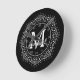 Monogrammed Name Boho Mandala Black Silver Round Clock