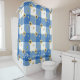 Modern trendy farmhouse style retro rustic country shower curtain featuring watercolor flowers over a trendy blue white buffalo check gingham chequered pattern. +++++++++ Easy to personalize with your family name and monogram initial.