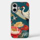 Monogrammed Navy Blue Peonies & Crane Chinoiserie Case-Mate iPhone Case