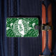 A personalized sports golf themed design in green and white. It features a gold ball that can be customised with monogram initials and a background pattern of golf clubs , golf balls and various golfing terms typography - all brought together to create a unique personalised golfing gift for the pro or amateur golfer.