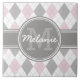 Monogrammed Pink and Grey Argyle Pattern Tile