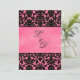 Monogrammed Pink, Black Damask Wedding Invitation
