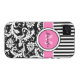 Monogrammed Pink, Black, White Striped Damask Case-Mate iPhone Case