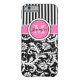 Monogrammed Pink, Black, White Striped Damask Case-Mate iPhone Case