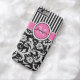 Monogrammed modern pink, black, and white stripes with damask Vibe™ iPhone 6 case.