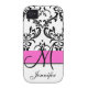 Monogrammed Pink Black White Swirls Damask Case-Mate iPhone Case