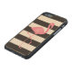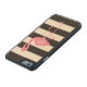 Monogrammed Pink Flamingo + Black + White Stripes Carved Wood iPhone Case