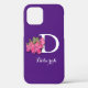 Monogrammed Pink Flower Purple Case-Mate iPhone Case