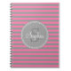 Chic, girly, trendy pink and grey stripe pattern background with a grey name and monogram template. A cool, modern, personalized design that would make a cute and thoughtful gift.