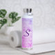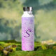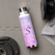 Design features a pink and purple marbled background on both front and back. Front features the initial you supply in a fun, purple font.