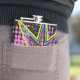 A dusty aqua and mottled black and pink background is the perfect backdrop for a fuchsia, aqua and yellow star. The monogram can be personalized to fit your needs.