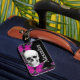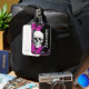 Gothic sugar skull and pretty purple magenta butterfly design, with personalised name text