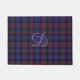 Traditional, colourful, universal tartan plaid door mat done in the regency blue, mauve, green, black and white Pride of Scotland pattern. A single letter monogram, in the middle, is ready to personalize for yourself or as a great gift idea.