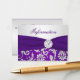This monogrammed purple and silver damask wedding information card with FAUX ribbon and jewelled brooch matches the wedding invitation shown below. If you require any changes, please email niteowlstudio@gmail.com.