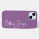 This monogrammed purple iphone 15 case is trendy yet and classic. It features your name in a fabulous modern script font in white. It's simple and minimal and professional.