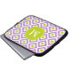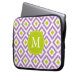 Monogrammed Purple Green Diamond Ikat Pattern Laptop Sleeve