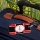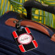 This Monogrammed Red / Black Luggage Tag also features: A leather strap with metal buckle for easy attachment.