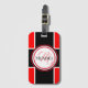 If you've ever loved to play checkers. Then you'll love the symbolic red and black chequered board design bolstered on both the front and the back of this Monogrammed Red / Black Luggage Tag. It's the perfect gift for anyone who loves to play board games. It features a black and red squared pattern, bordered in white stripes. The front and centred monogram on this creation features a red, black and white circular seal with faded pink initial with a black colour printed name design.