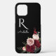Monogrammed Red Blush Roses on Black Case-Mate iPhone Case