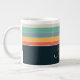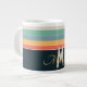 monogrammed retro 70s Navy blue yellow pink stripe Large Coffee Mug