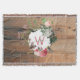 Monogrammed Rustic Wood Vintage Flowers Throw Blanket