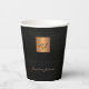 Luxury monogram personalized paper cups with a black leather look background and a faux gold copper metallic square with elegant script signature name and initials. ++++++++++++++ Easy to personalize with your personal initials and name. +++++++++++++ Could be an elegant gift for a birthday, housewarming, graduation, anniversary, retirement, Christmas or any other occasion.