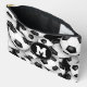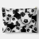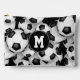 This soccer themed zipper pouch features a random pattern of varied size soccer balls turned every which way on a black background - customize with the soccer player's monogram - by katz_d_zynes