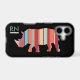 A colour-striped rhinoceros on black, with custom initials. Specie of odd-toed ungulates in the family Rhinocerotidae.