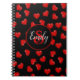 monogrammed stylish Red heart pattern on black Notebook