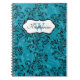 This personalized teal blue, black, and white ornate floral scrolled pattern notebook has template boxes for you to add your name, monogram or other text to. If you need help customizing this item, please email niteowlstudio@gmail.com for assistance.