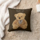 Monogrammed newborn's Teddy bear throw pillow monogrammed with name and date. It's dark brown on one side and light brown on the other. Available in different colours, sizes and materials.