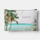 Stay organized in tropical style with this personalized accessory pouch! Featuring a watercolor beach scene, palm trees, and a custom monogram for a coastal vibe.