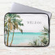 Protect your laptop in tropical style! This monogrammed sleeve features a watercolor blue beach, palm tree leaves, and coastal vibes—suitable for summer lovers.