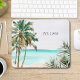 Monogrammed Tropical Palm Tree Leaves Blue Beach Mouse Pad