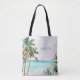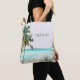 Monogrammed Tropical Palm Tree Leaves Blue Beach Tote Bag