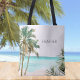 Carry beach vibes everywhere with this tropical tote! Featuring a watercolor palm tree design, green palm leaves, and a custom monogram for a coastal touch.