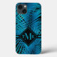 Tropical turquoise palm fronds on black, this phone case - FOR ANY DEVICE STYLE OR NUMBER - features your monogram in chic lettering. Create for yourself or give as a gift. MATCHING items in our store.