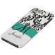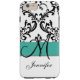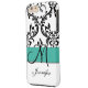 Monogrammed Turquoise Black White Swirls Damask Case-Mate iPhone Case