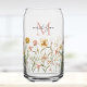 Introducing our Monogrammed Watercolor Wildflower Meadow Can Glass. Featuring watercolor illustration of wild flower garden illustration and text that can be personalized in romantic and elegant style. Suitable as nature themed bridesmaid gift.