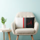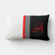 This personalized lumbar pillow features bold vertical stripes in white, red, grey, and black colours with a script monogram on the right side in matching red shade. Colour customization available - click Personalize and Customize further to edit. Don't forget the backside!