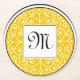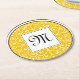 Monogrammed Yellow Black White Swirls Pattern Round Paper Coaster