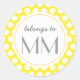 Yellow dots pattern background featuring a label on the middle written "belongs to MM". This is a model text, which can be easily changed by your own text, name, monogram or tags.